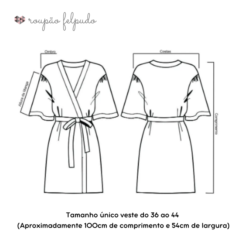 Possui manga 3/4, o que lhe confere charme e sofisticação. Ideal para momentos de relaxamento, combina funcionalidade e estilo para tornar seu pós-banho ainda mais agradável.