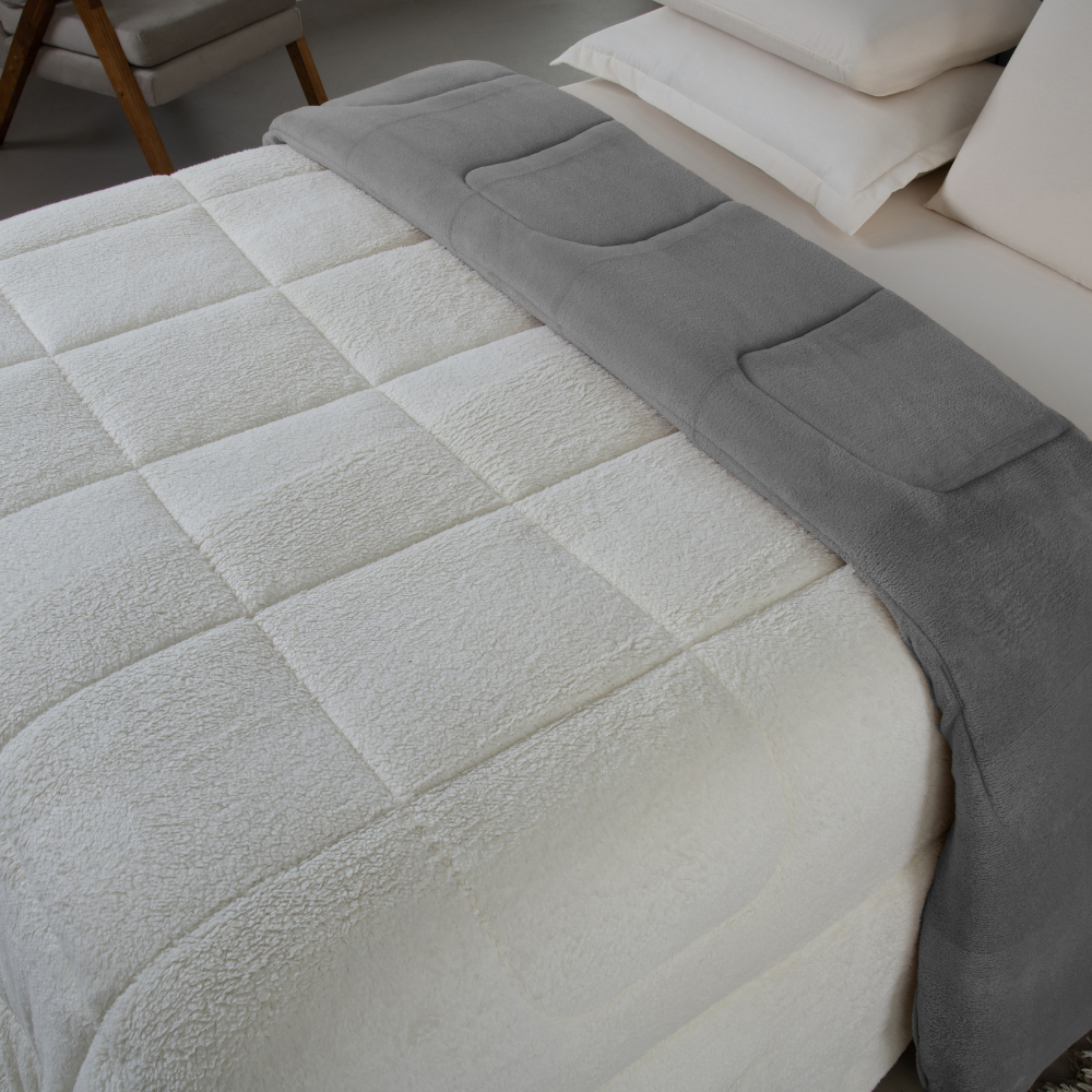 - Dupla Face, de um lado material manta soft e do outro sherpa de carneiro, podendo usar as duas opções;