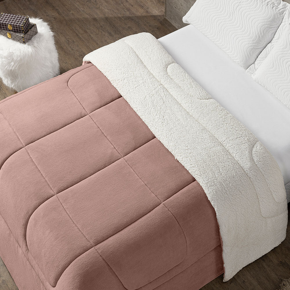 O Coberdrom Maya é um verdadeiro abraço de calor, confeccionado com uma combinação de materiais de alta qualidade. Um lado é revestido com a sherpa que simula o toque suave da lã de carneiro, enquanto o outro lado é revestido com uma matinha soft super macia. Entre esses dois materiais, uma manta interna é cuidadosamente costurada nas bordas, mantendo tudo no lugar e evitando que a manta interna se embole durante o uso ou na lavagem. Isso garante a durabilidade do produto e mantém a qualidade e o aconchego que você merece.