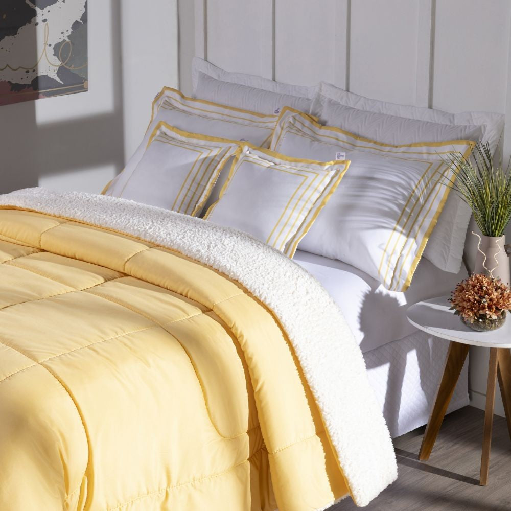 Descubra o Coberdrom Soft, a escolha perfeita para unir estilo, conforto e praticidade nas suas noites. Com design dupla face, você pode aproveitar o toque sofisticado do hipercal 400 fios de um lado e a maciez acolhedora da sherpa, que simula a textura da lã de carneiro, do outro.