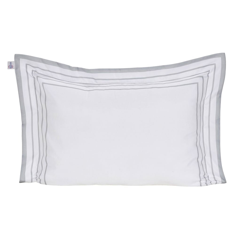 As fronhas possuem um debrum estampado em três lados, adicionando um acabamento elegante, enquanto as capas de almofada contam com debrum em todos os lados e fechamento em zíper para mais praticidade. O coberdrom é costurado nas bordas, garantindo que a manta interna fique sempre no lugar, mesmo após o uso.