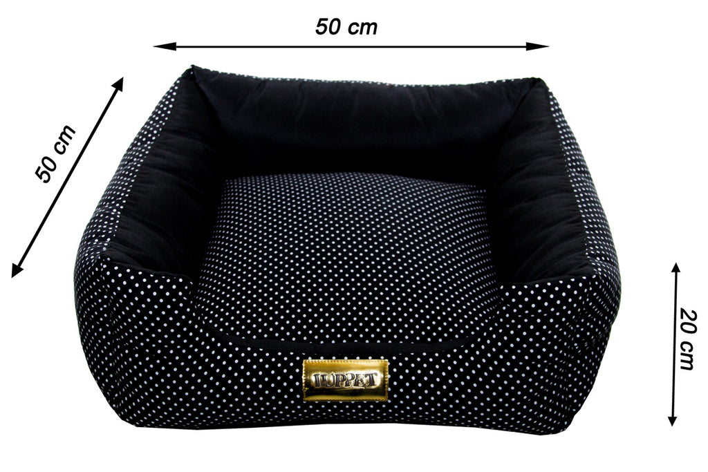 A cama para Cachorro Luppet é feita com tecido de Microfibra que não permite tão facilmente a penetração de líquidos e seu fundo é 100% impermeável.