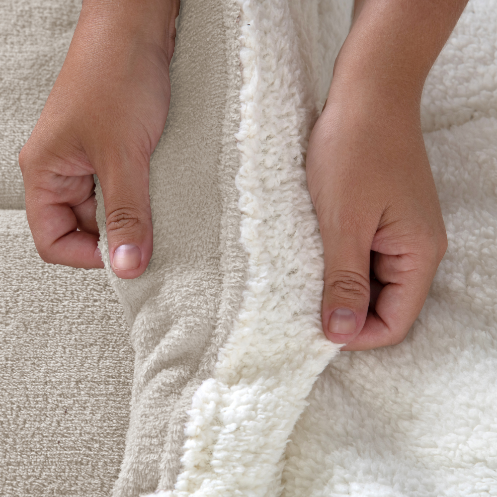 - Dupla Face, de um lado material manta soft e do outro sherpa de carneiro, podendo usar as duas opções;