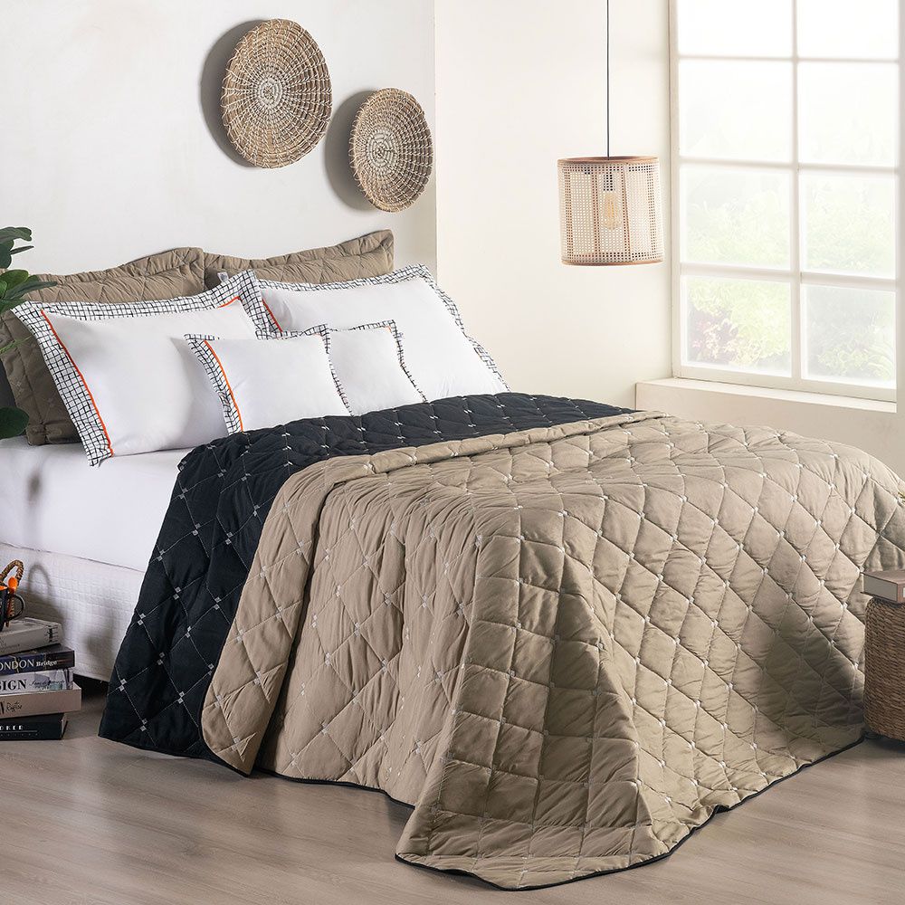 01 Cobre Leito Dupla Face Bordado Casal Padrão: 2,40m x 2,20m