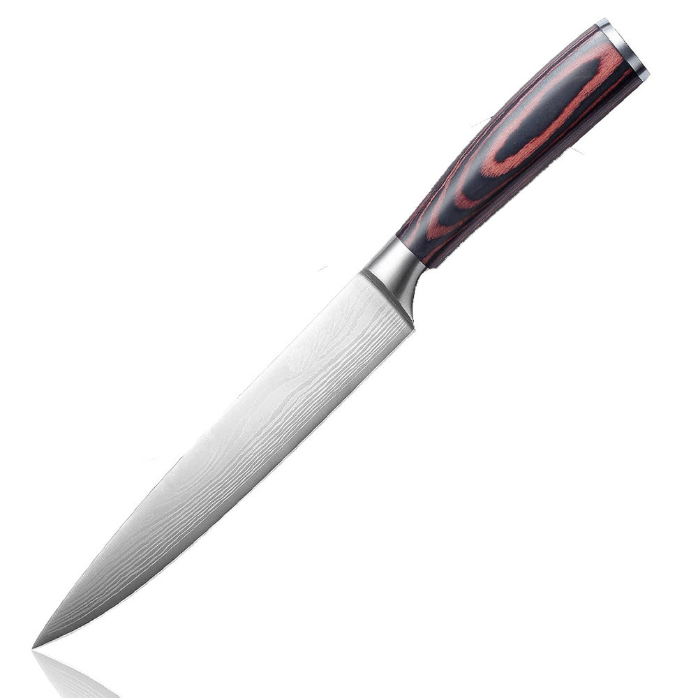 Você está procurando um kit de facas e cutelo de alta qualidade, durabilidade e beleza para a sua cozinha? Então você vai adorar este kit que traz o padrão aço damasco, um dos mais resistentes e afiados do mundo.