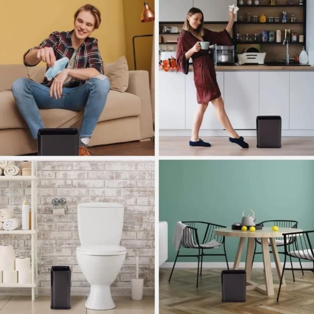 Praticidade no Dia a Dia: A ausência de tampa simplifica o descarte rápido e acessível de resíduos.